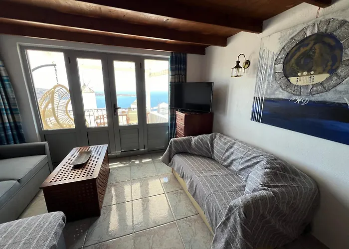 Diese Unterkunft verfügt über eine komplette Küche mit Einrichtungen wie einem Herd und einem Geschirrspüler. Die nächstgelegene Bushaltestelle Oia befindet sich gleich neben dem Apartment.